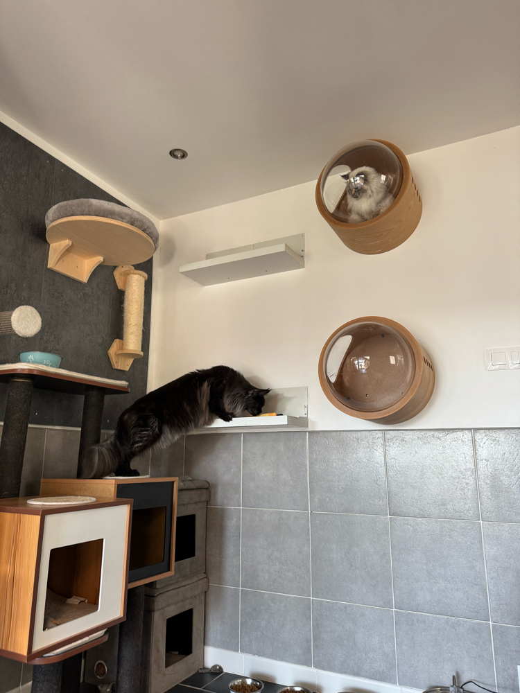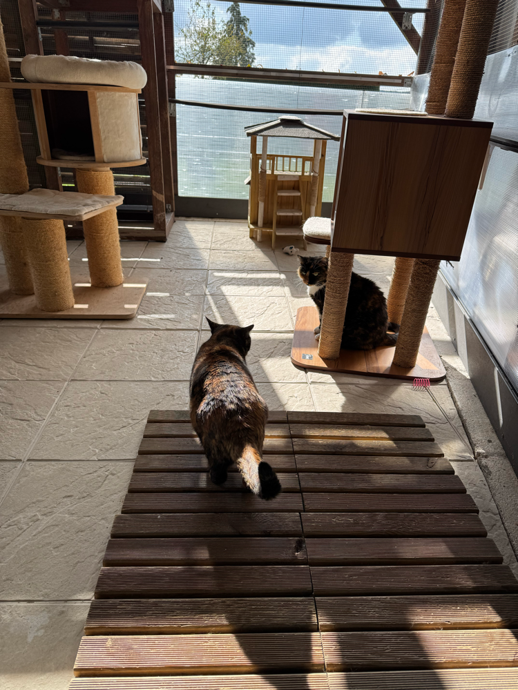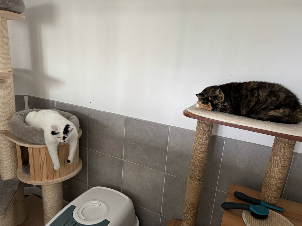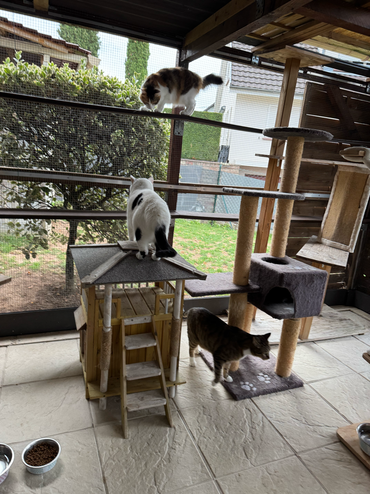 Située à Leimbach, notre pension est à la campagne et dans un environnement calme. Aménagée d'arbres à chats, jouets, loveuses, nichettes avec coussinages.... Elle est chauffée l'hiver.